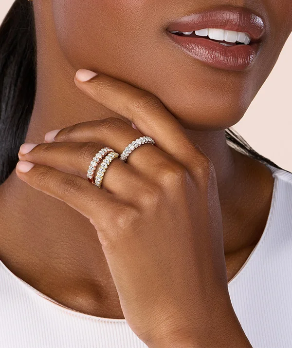 Shine with beautiful rings that can be worn on their own or stacked together.