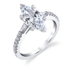 Sylvie’s marquise classic diamond engagement rings feature elegant and creative settings that highlight the beauty of the marquise-cut diamonds.