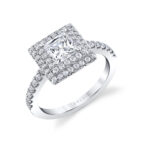 Round double halo engagement rings feature a round center diamond that is encircled by two halos of accent diamonds. The round diamond cut, esteemed for its excellent light return, and known as the most brilliant of all diamond cuts, becomes the radiant centerpiece of these engagement rings. The double halo setting magnifies the diamond’s perceived size and scintillation, creating a captivating display of light. Sylvie’s round double halo designs harness this effect, artfully arranged to ensure each diamond catches the light just so. This harmonious pairing results in a ring that is both visually substantial and radiant, perfect for those who appreciate both traditional and contemporary elements in their jewelry.