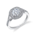 Round double halo engagement rings feature a round center diamond that is encircled by two halos of accent diamonds. The round diamond cut, esteemed for its excellent light return, and known as the most brilliant of all diamond cuts, becomes the radiant centerpiece of these engagement rings. The double halo setting magnifies the diamond’s perceived size and scintillation, creating a captivating display of light. Sylvie’s round double halo designs harness this effect, artfully arranged to ensure each diamond catches the light just so. This harmonious pairing results in a ring that is both visually substantial and radiant, perfect for those who appreciate both traditional and contemporary elements in their jewelry.