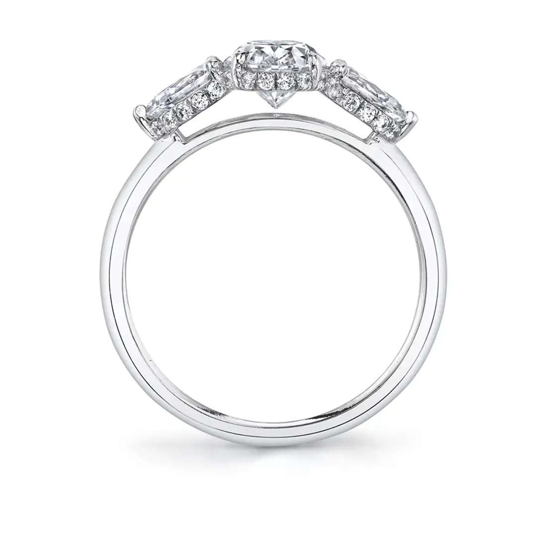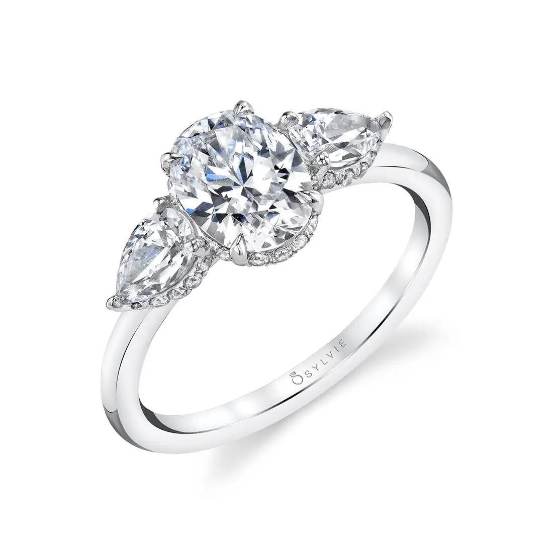 Three Stone Oval Engagement Ring with Pear Side Stones