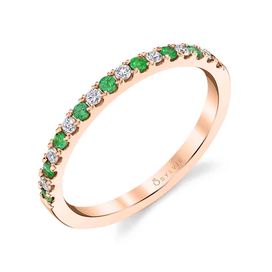 fbpx Emerald and Diamond Wedding Band - Sylvie Jewelry Click here to design your own engagement ring