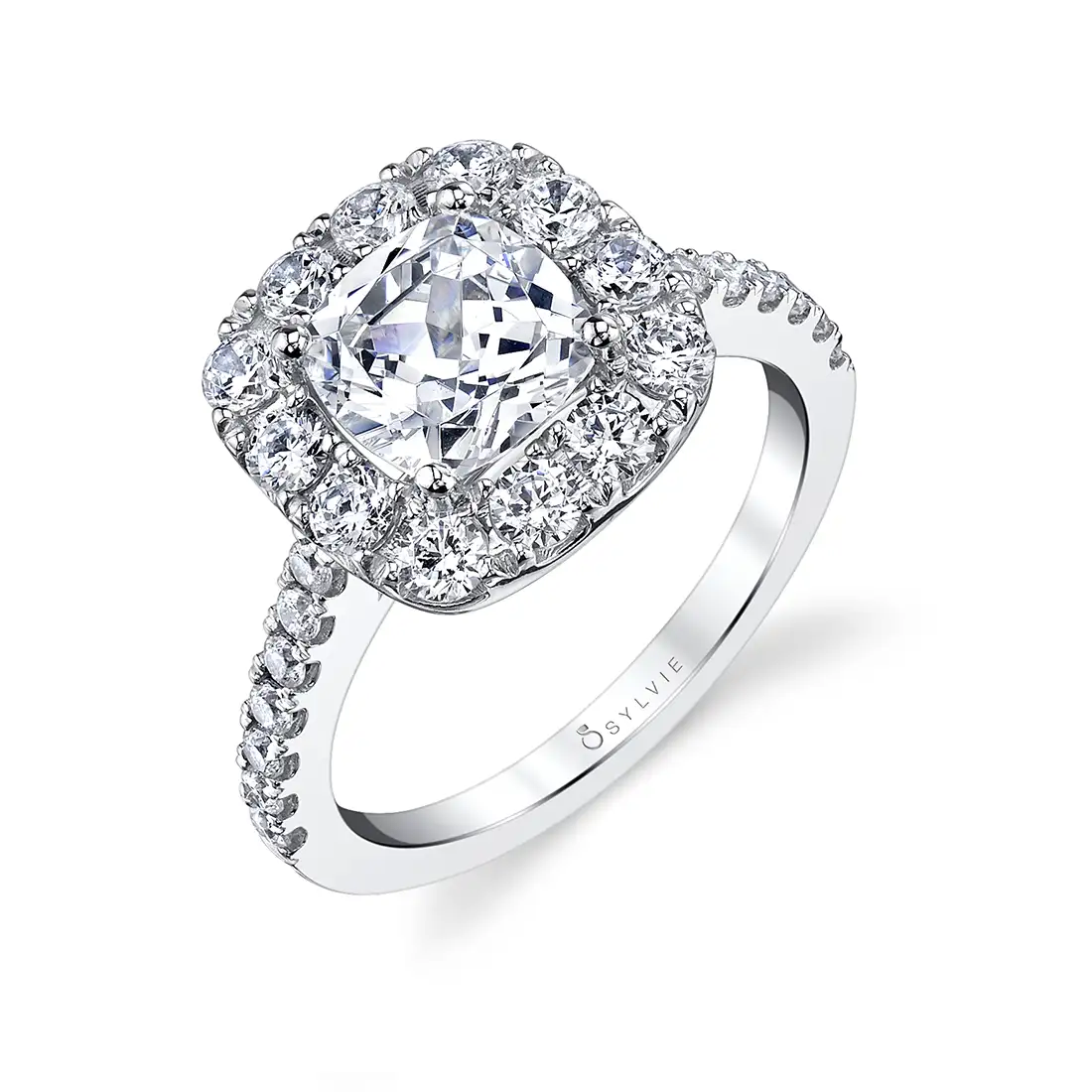 fbpx Cushion Cut Classic Halo Engagement Ring - Olivia - Sylvie Jewelry Click here to design your own engagement ring
