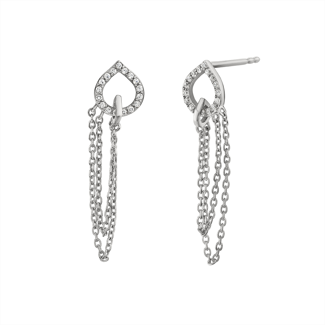 We frame our signature Shell motif in petite pavé diamonds, totaling 0.16 carats, and a double chain drapes from a polished Shell charm for soft, fluid movement. Crafted in 14K or 18K gold, these lightweight chain earrings are refined on their own and easy to pair in a curated earring stack.