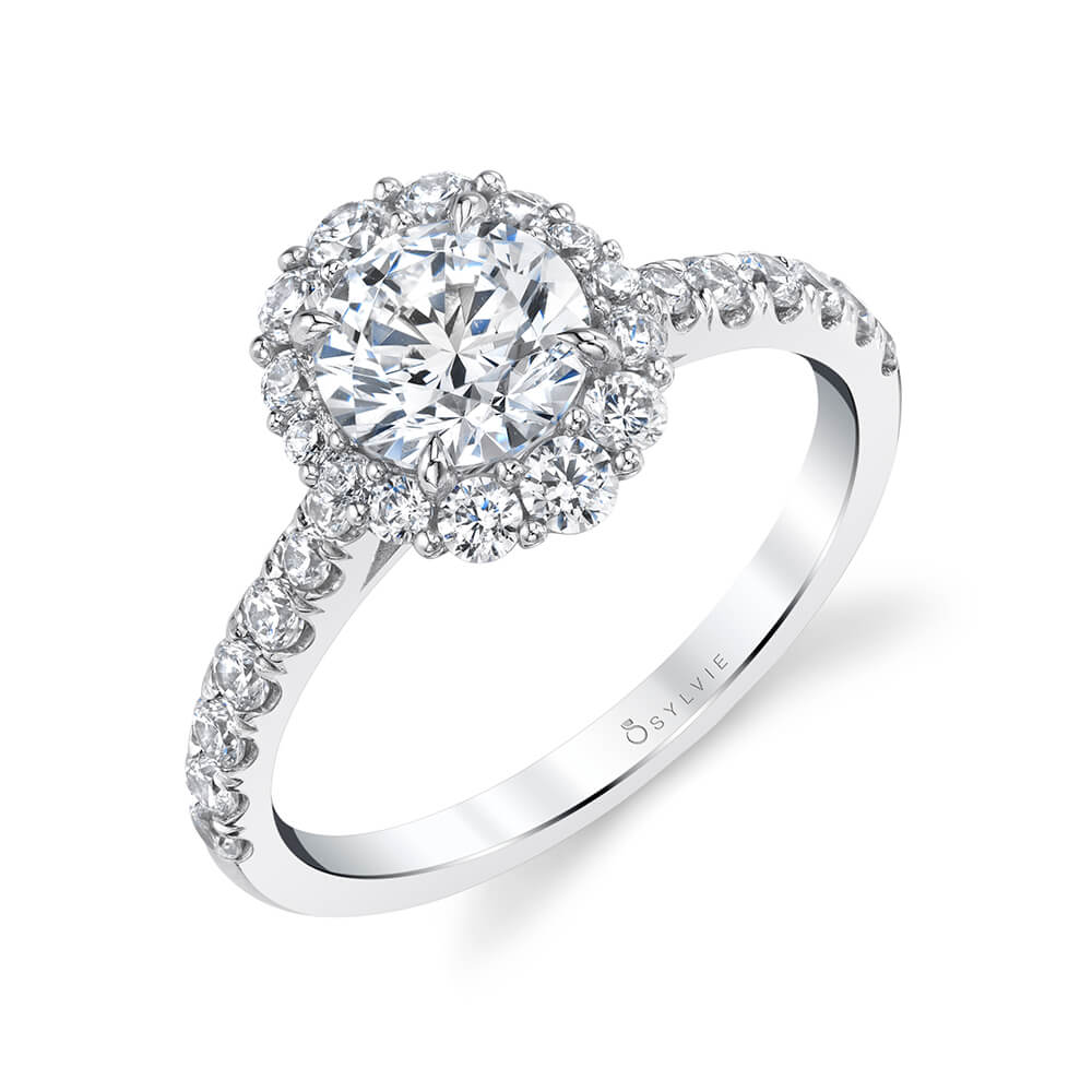 fbpx Round Cut Halo Engagement Ring - Jillian - Sylvie Jewelry Click here to design your own engagement ring