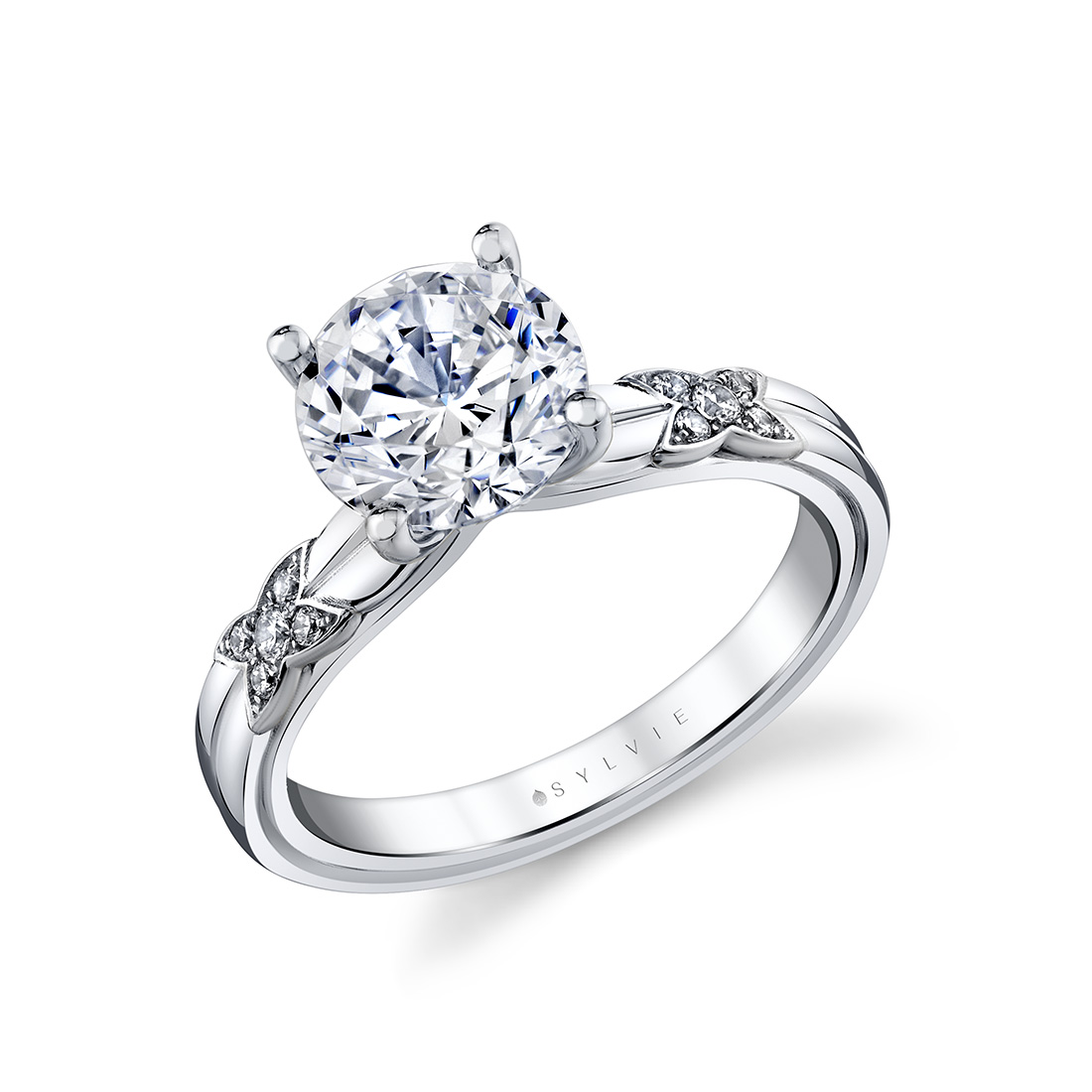 The GIA scale ranges from D (colorless) to Z (light yellow). All Sylvie diamond engagement ring settings use diamonds in the near-colorless range.