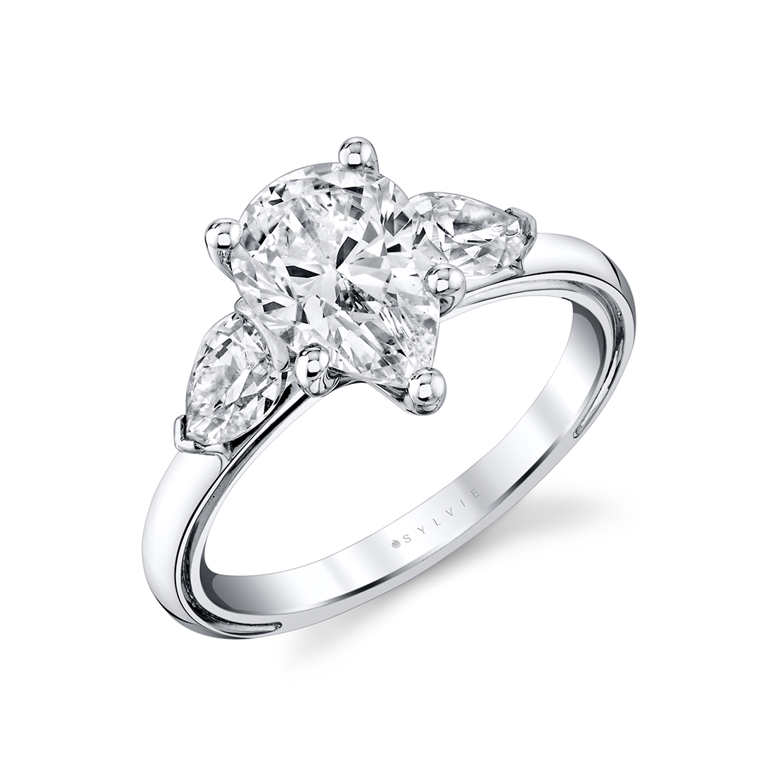 fbpx Iconelle Pear Three Stone Engagement Ring - Nahla - Sylvie Jewelry Click here to design your own engagement ring