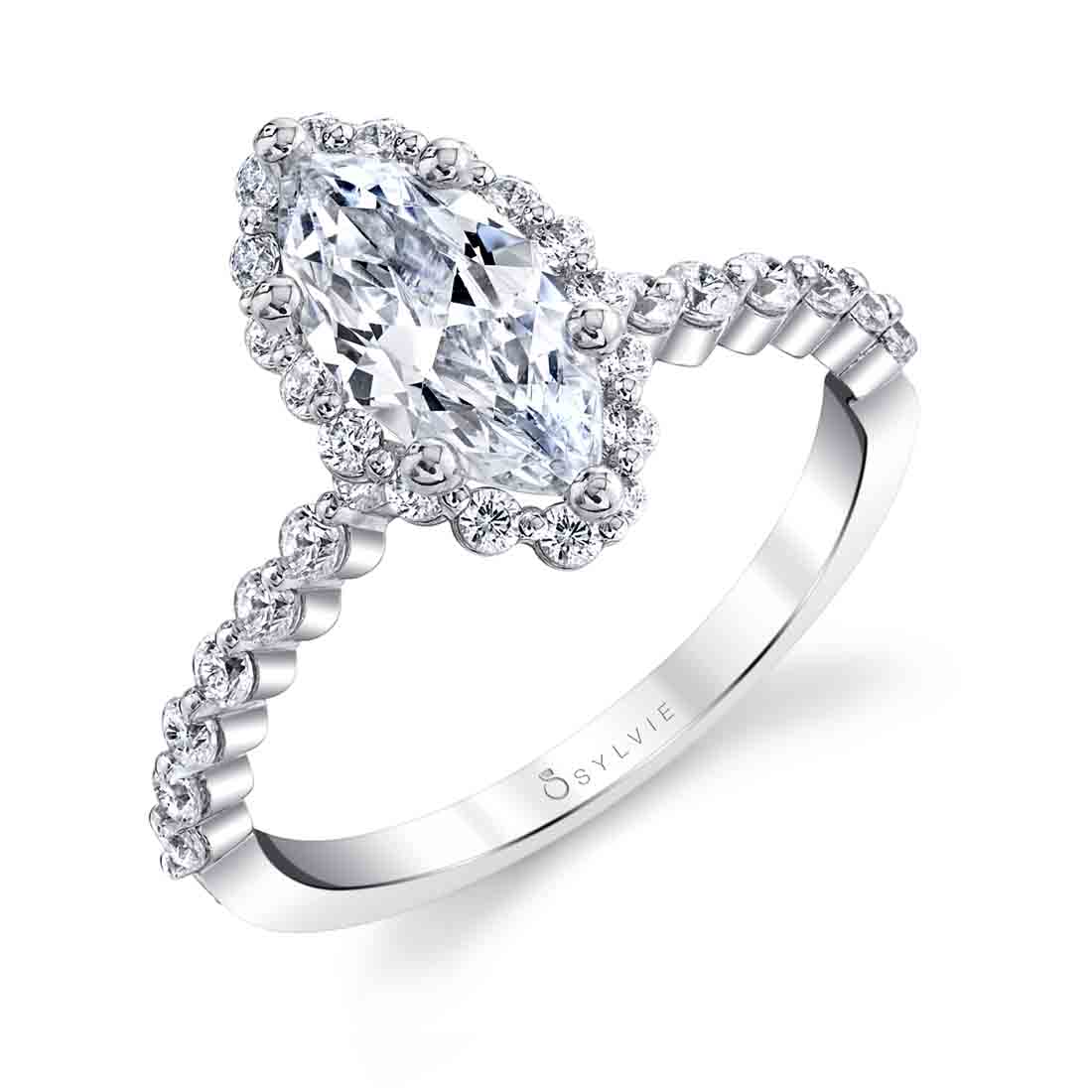 fbpx Marquise Cut Classic Halo Engagement Ring - Athena - Sylvie Jewelry Click here to design your own engagement ring