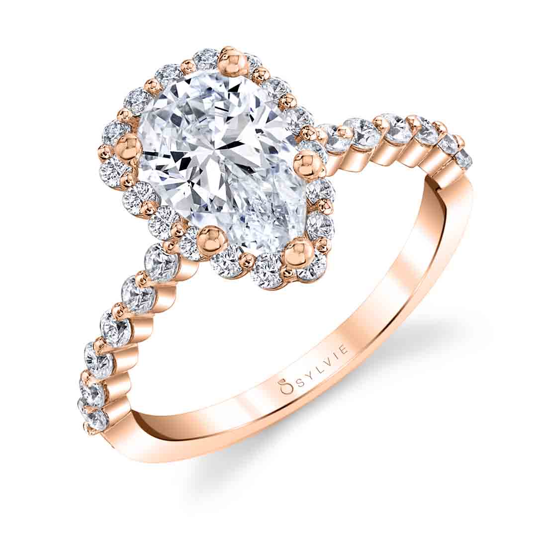 fbpx Pear Shaped Classic Halo Engagement Ring - Athena - Sylvie Jewelry Click here to design your own engagement ring