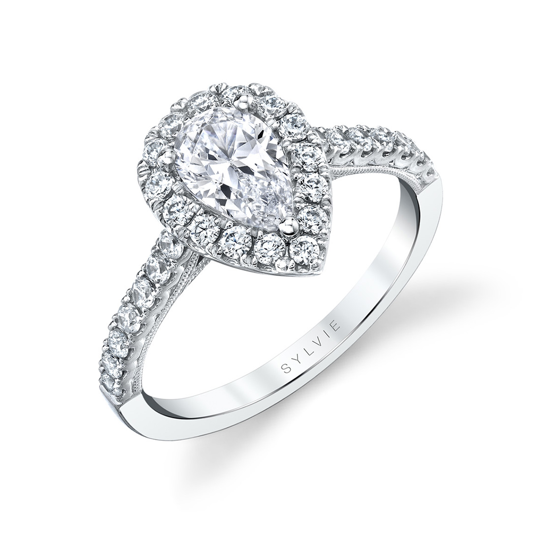 fbpx Pear Shaped Halo Engagement Ring - Diandra - Sylvie Jewelry Click here to design your own engagement ring