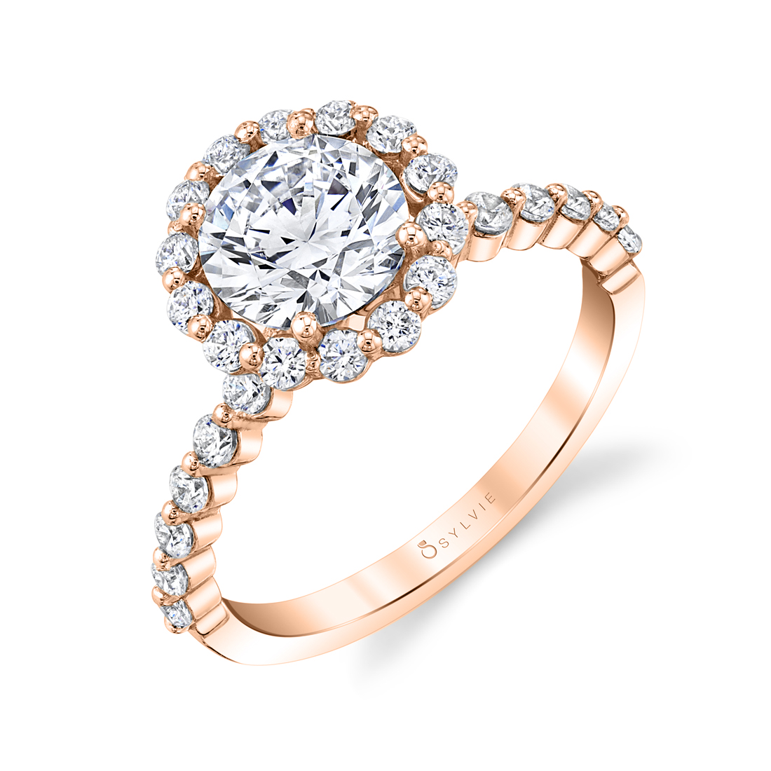 fbpx Round Cut Classic Halo Engagement Ring - Athena - Sylvie Jewelry Click here to design your own engagement ring