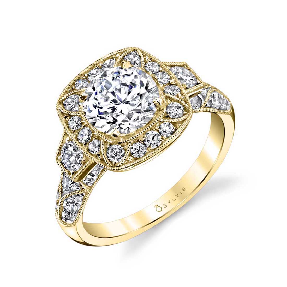 fbpx Round Cut Modern Vintage Engagement Ring - Mirabelle - Sylvie Jewelry Click here to design your own engagement ring