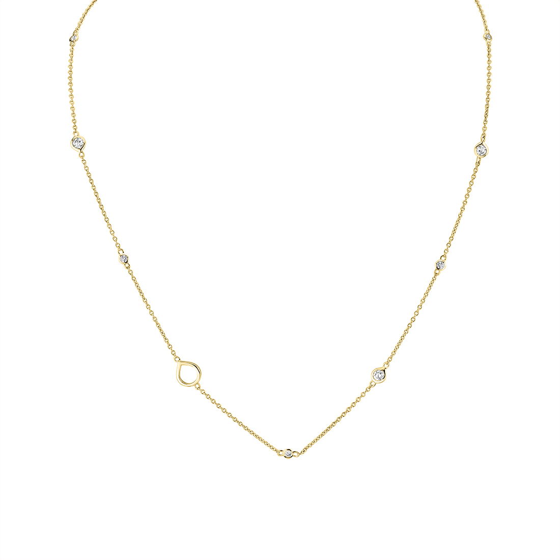 A playful mix of a polished Shell charm and Shell bezel-set round diamonds, totaling 0.35 carats, creates a softly scattered effect around the neckline. Dress it up or down, this bezel diamonds necklace has endless styling options.