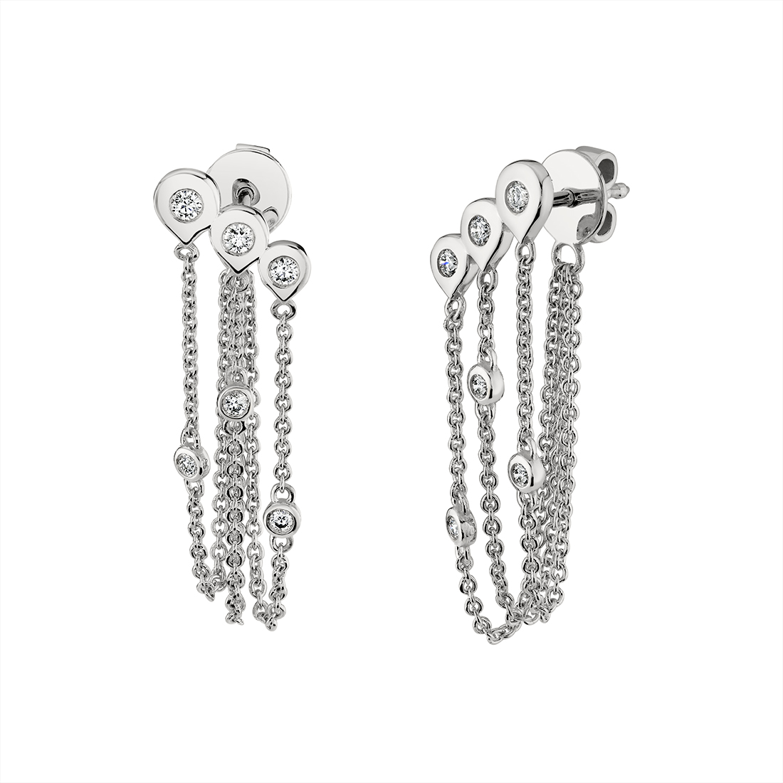 Three petite Shell bezels anchor cascading chains set with bezel-framed natural round diamonds, totaling 0.27 carats. Crafted in 14K or 18K polished gold, these chain earrings feature secure, comfortable backs as well as layered chains that add refined movement while keeping a sleek, lightweight profile.