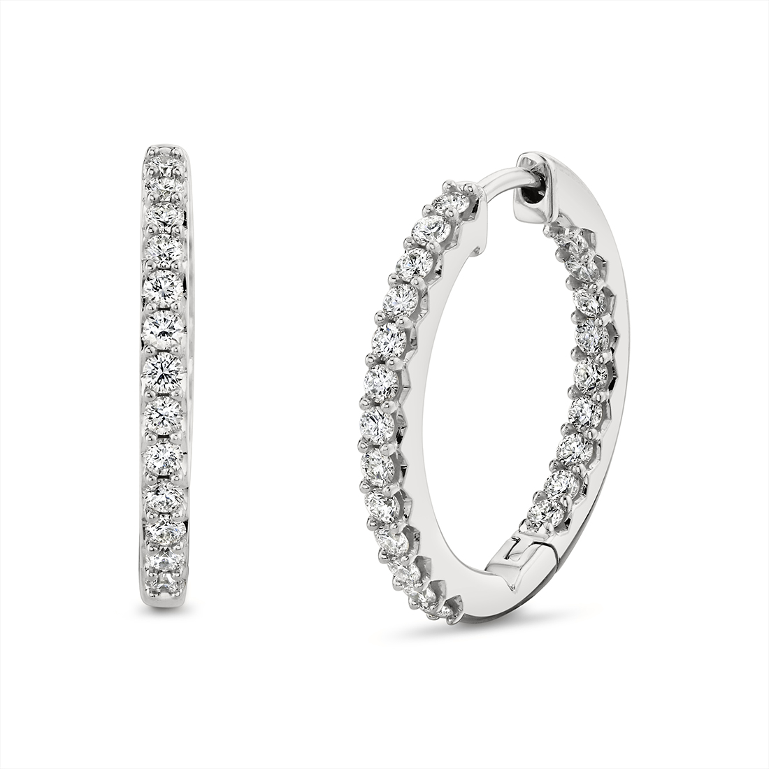 These delicate Shell Héritage diamond hoop earrings in high-quality gold are adorned with 0.8 carats of round diamonds on the exterior and interior of the hoop, adding just the right amount of sparkle.