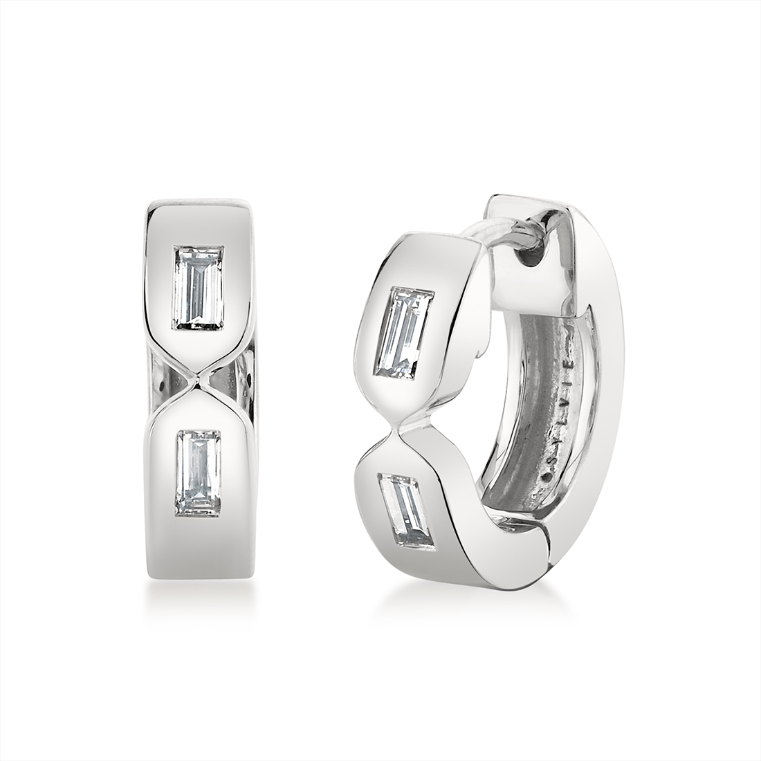 fbpx Shell Tip Pinch Bezel Baguette Diamond Huggies - Sylvie Jewelry Click here to design your own engagement ring